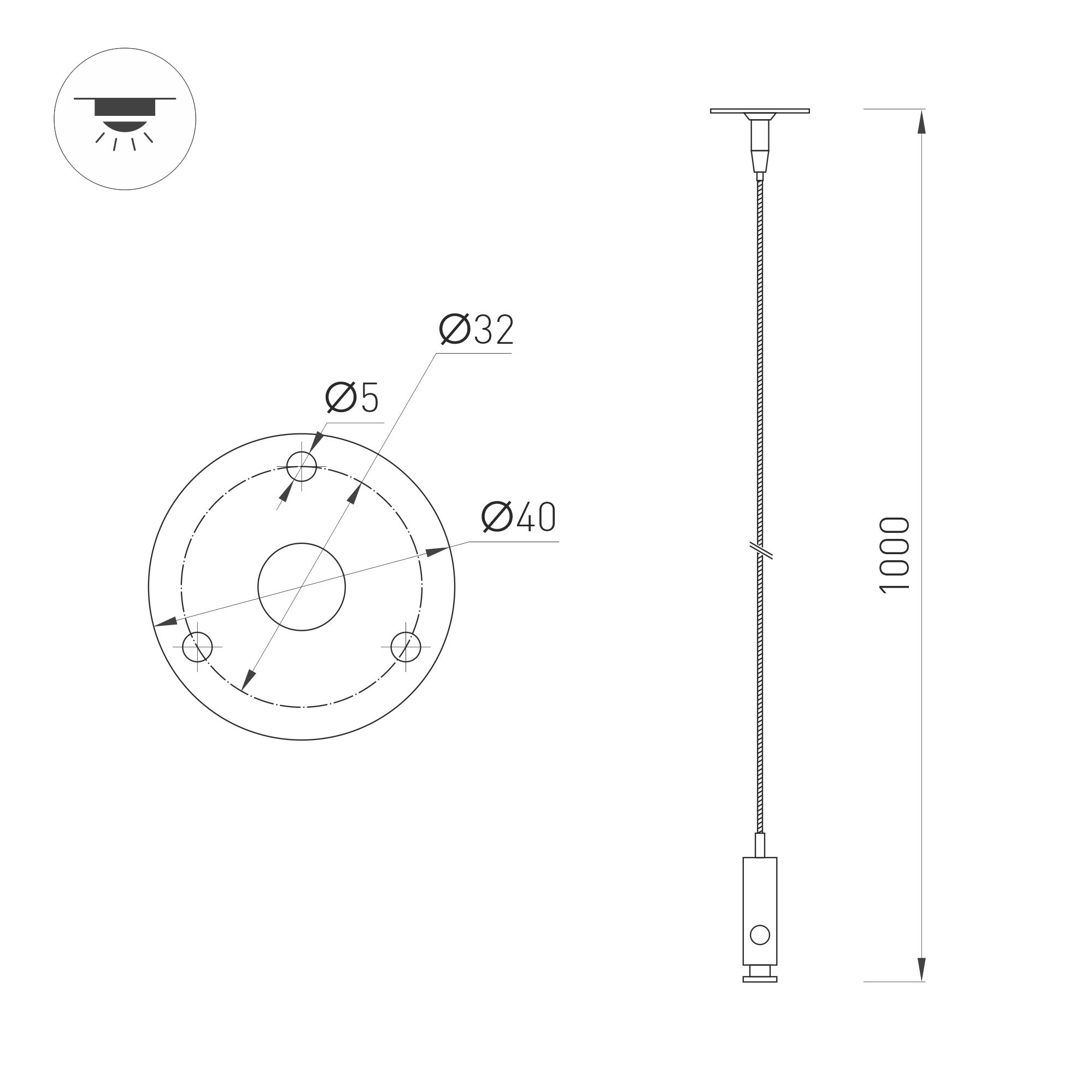 Подвес ALT-LARGO-HANG-L1000 (SL) для светильников LARGO. В комплекте 2 троса длиной 1 м и шурупы с дюбелями.