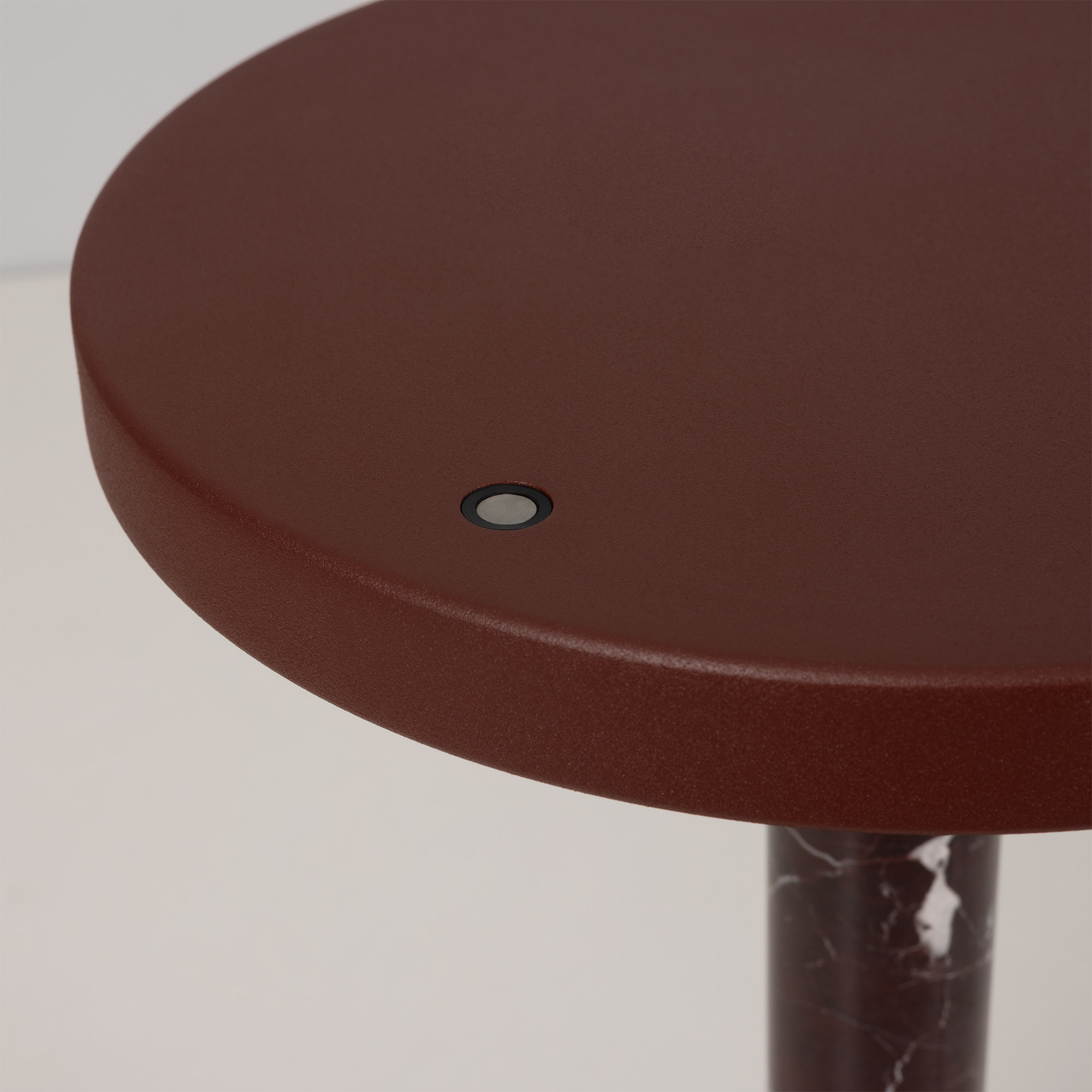 Настольный светильник ALYSS. С изменяемой цветовой температурой 2700/3200/4000К, переключается коротким нажатием на сенсорную кнопку на плафоне, диммирование происходит за счет ее удержания. Мощность 5 Вт, св. поток 195 лм, 39 лм/Вт, CRI>92, угол 110°, напряжение питания 230 В. Корпус из алюминия цвета бургунди, декоративная вставка из мрамора, степень защиты IP20. Размер: диаметр 225 мм, высота 300 мм. Пульсация <1%.